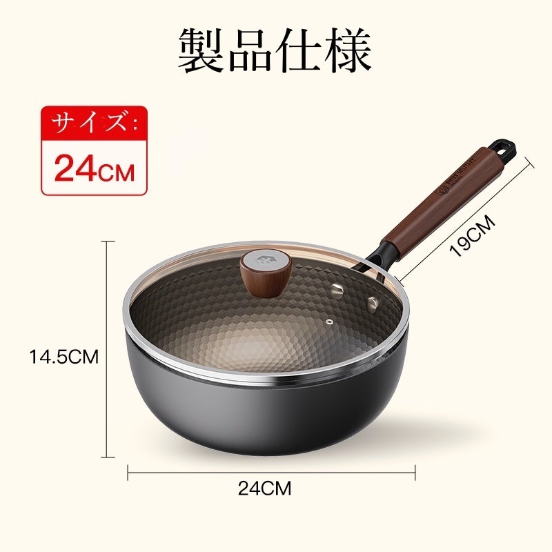 製品名:SWISS MILITARY 中華鍋重量(蓋無し):900g(24cm)/700g(20cm)蓋の重さ:600g(24cm)/470g(20cm)サイズ:24cm/20cm深さ:10cm(24cm)/9.5cm(20cm)生産国:中国