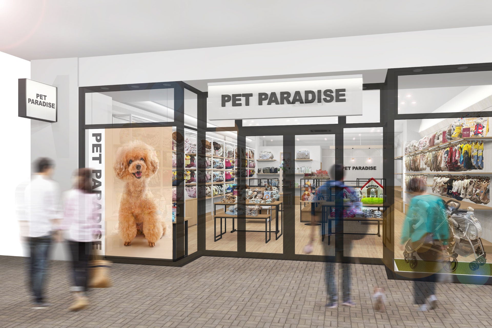 『ペットパラダイス』は、「ペットと人間の、新しいカンケイ」をブランドパーパスに掲げ、ペットの視点から考えた着心地のよいペット服をはじめ、ペットが毎日の生活を快適に送るためのグッズを多数取り揃える店舗です。