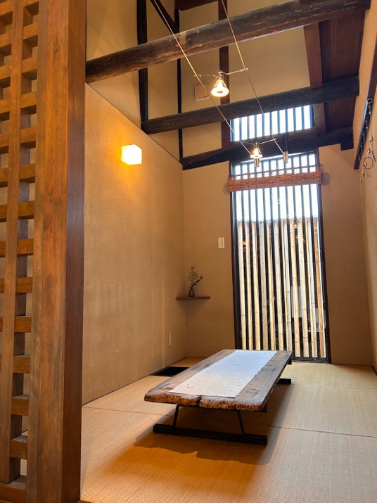 NIJIRIというこの町家の名称は、狭く、高さも2尺2寸(約67cm)と低いことが特徴で、体をかがめて入る草庵茶室の客の出入り口「躙り口」(にじりぐち)に由来します。