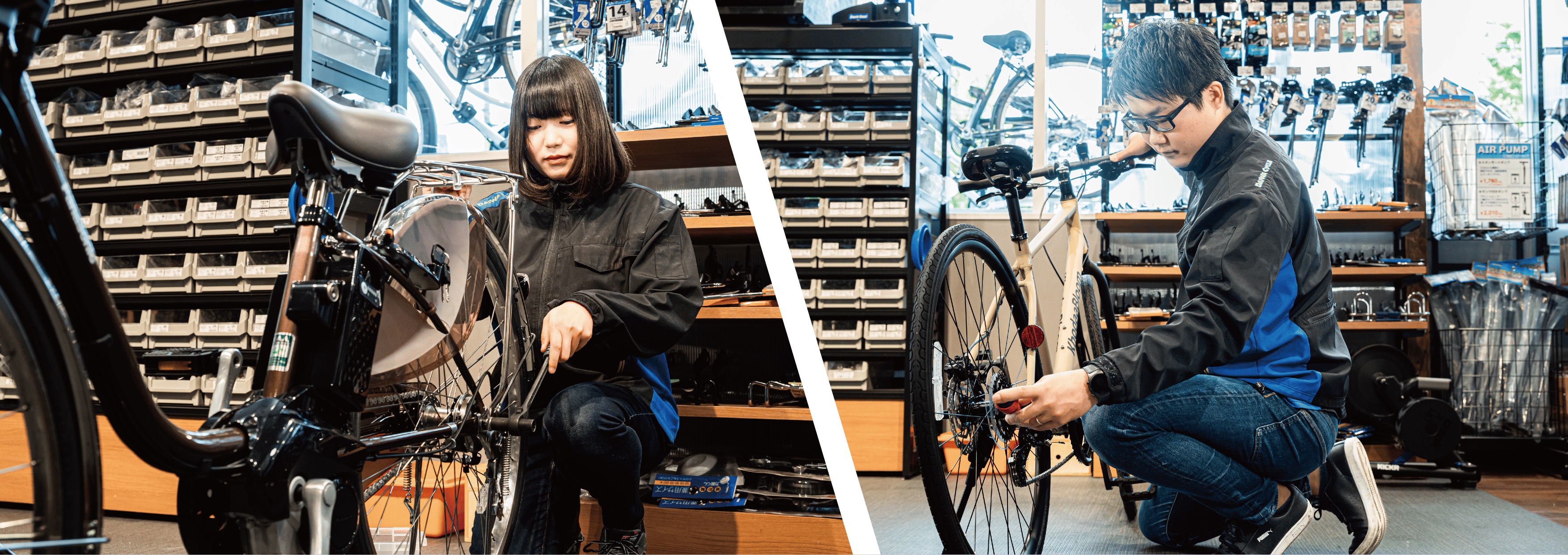 自転車の購入だけでなく、空気入れや点検などのメンテナンスから修理、不要な自転車の処分など、自転車にまつわるサービスを幅広く提供しております。