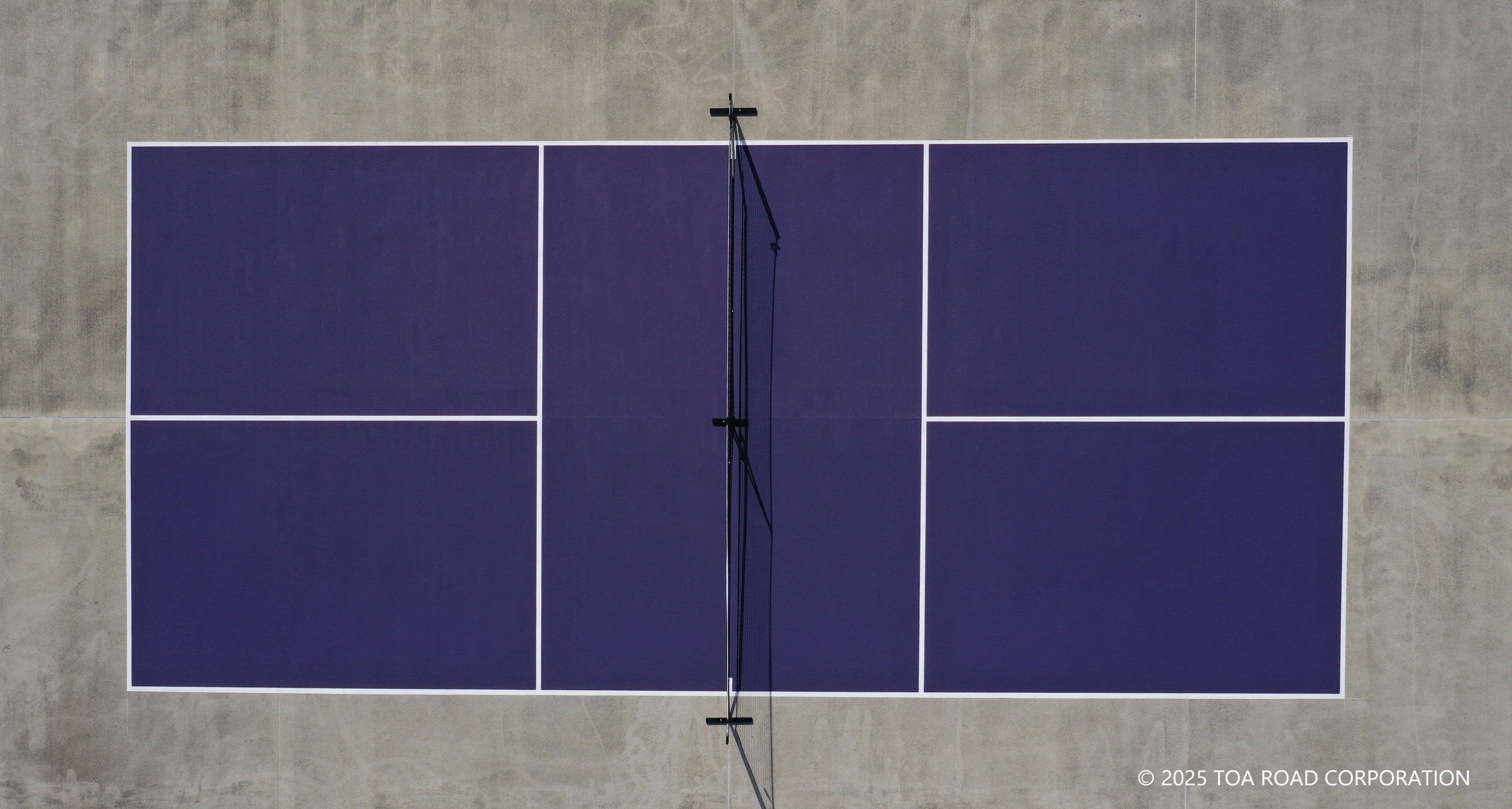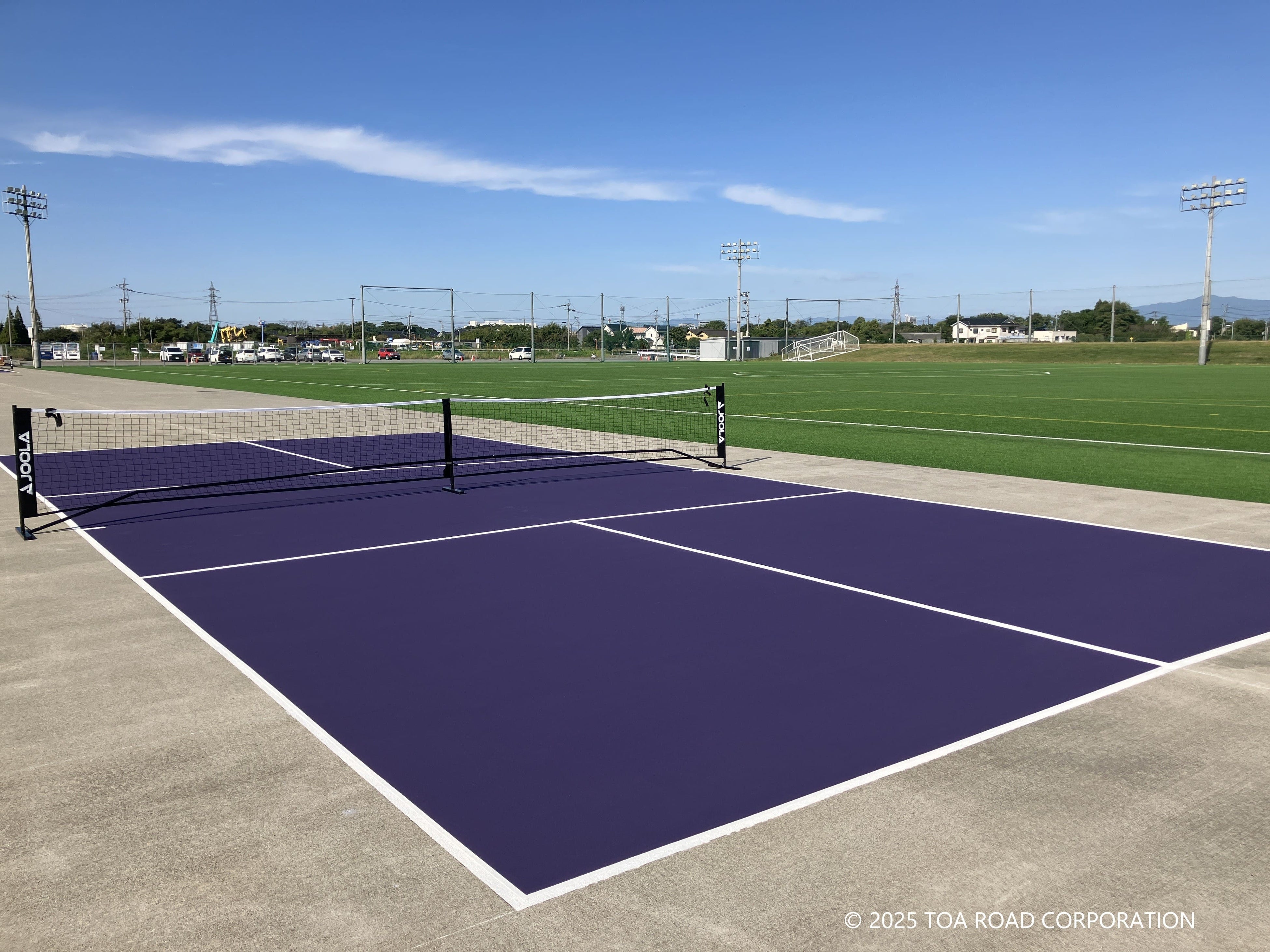 ■この度、東亜道路工業は熊本県上益城郡嘉島町にある熊本県フットボールセンター(愛称:COSMOS)施設内に、ピックルボール専用コート2面を施工しました。
