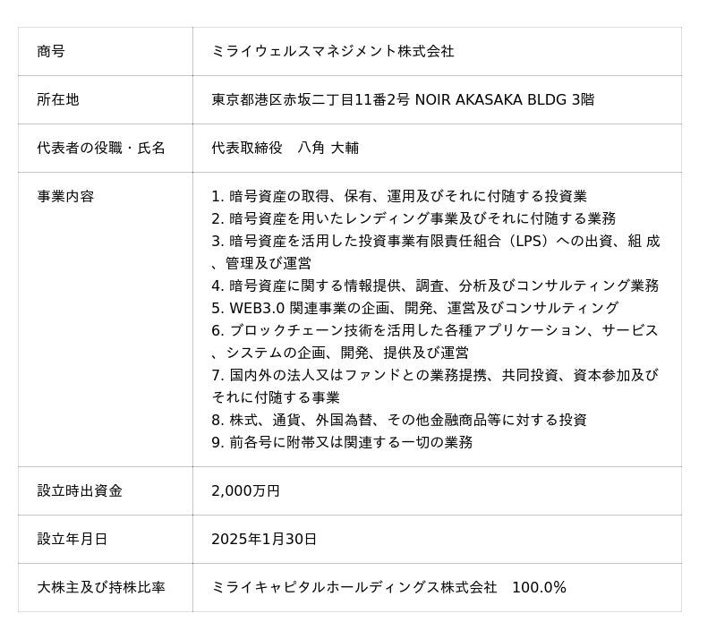 当社のグループ会社であるミライウェルスマネジメント株式会社(以下、「当社」という)は、暗号資産レンディングプレミアムサービス「RENKIN」の2025年10月下旬サービス開始を予定しておりましたが、本日よりサービスを開始するとともに、サービスサイトを開設しましたのでお知らせいたします。