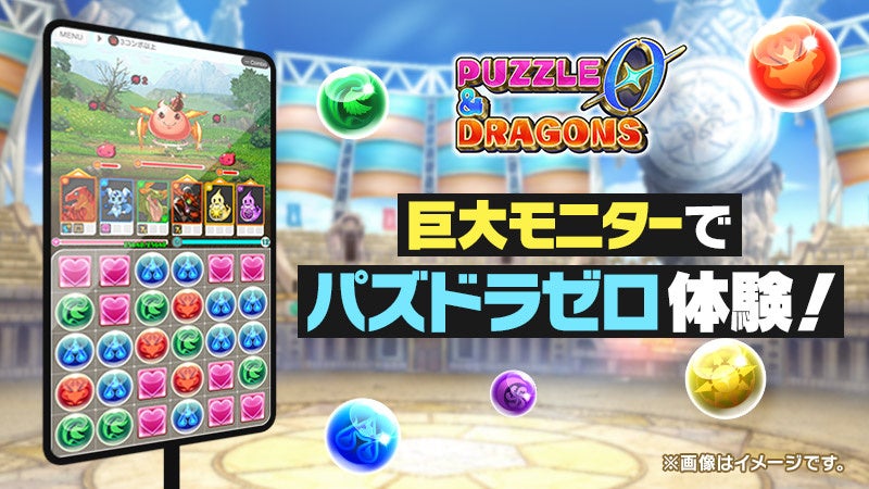 また、ダンジョントレジャーの配信やシリーズ最新作『パズドラゼロ』を巨大モニターで体験できるコーナー、最新グッズの販売、大きな「リアルガチャドラ」と写真撮影ができるコーナー、モンスター図鑑をイメージしたフォトスポットなど、多数のお楽しみをご用意しています。