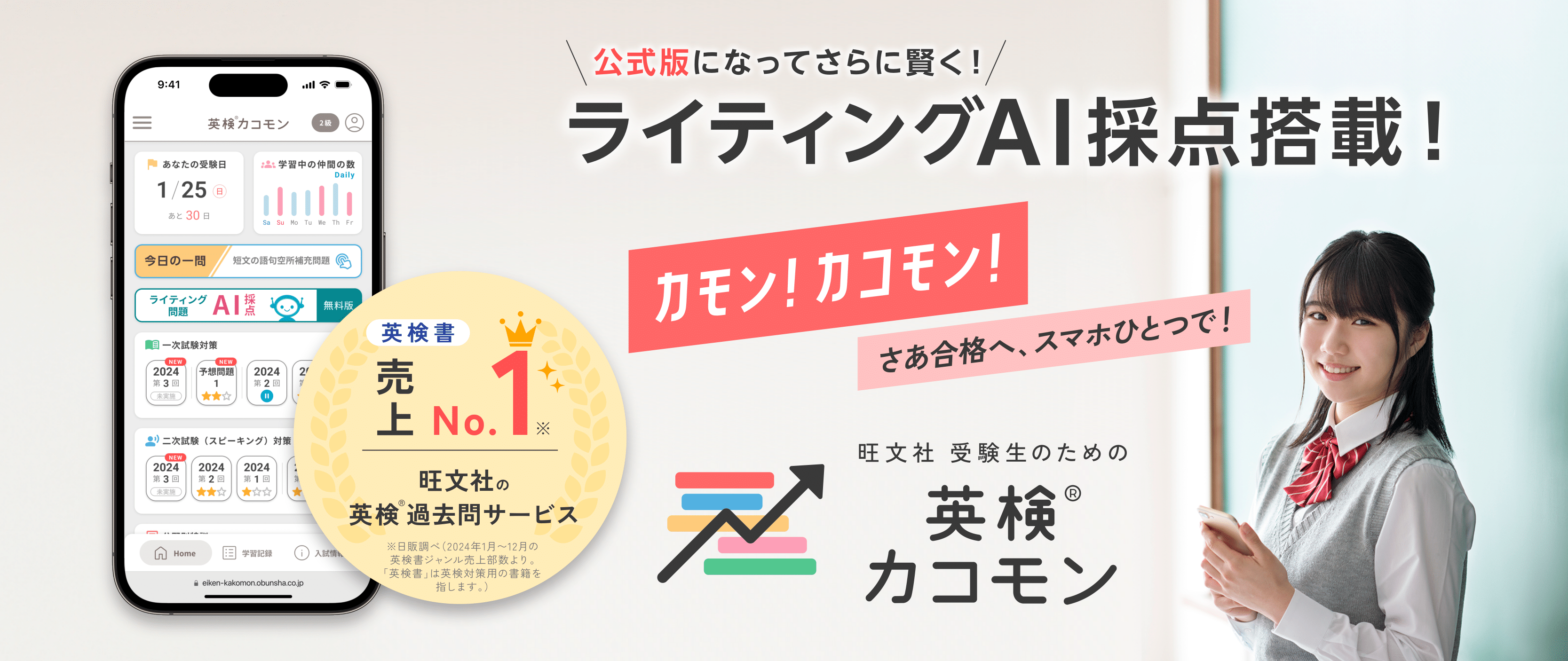 教育出版社の株式会社旺文社(東京都新宿区、代表取締役社長 粂川秀樹)は、実用英語技能検定(以下、英検)の過去問学習ができるwebサービス「受験生のための英検(R)カコモン」に搭載のライティングAI採点を、2025年10月31日に公式版へアップグレードしたことをお知らせします。