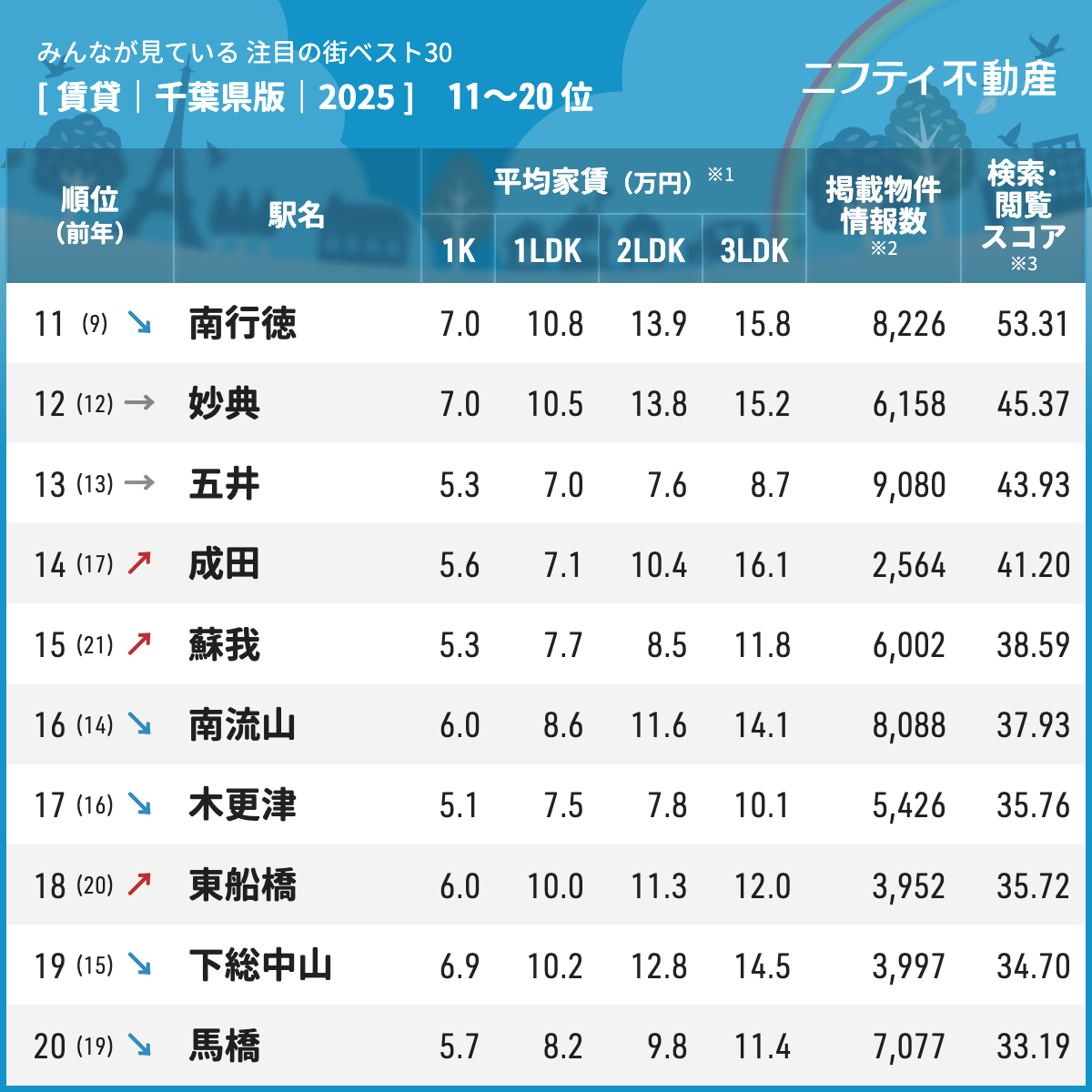 注目の街ランキングベスト30 千葉県版2025 11~20位
