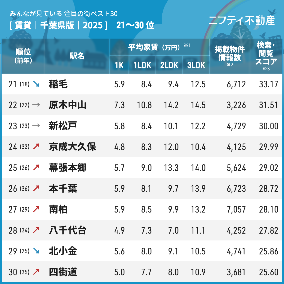 注目の街ランキングベスト30 千葉県版2025 21~30位