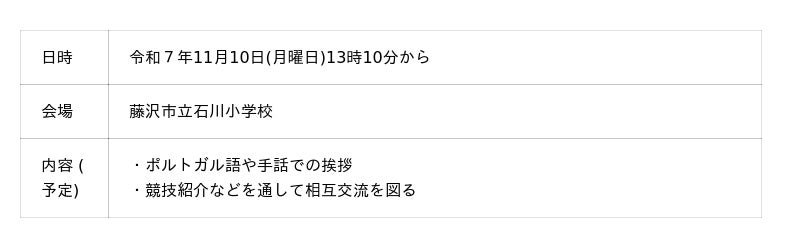 選手が藤沢市内の小学校で児童と交流を行います。(会場校の児童以外は参加できません。)