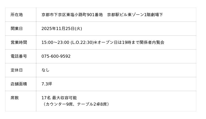 日本最大級のBARチェーン「お酒の美術館」を国内に展開する株式会社NBG(本社:京都市中京区、代表取締役:冨士元 明仁)は、2025年11月25日(火)に「お酒の美術館 京都駅中央口店」(住所:京都市下京区)を京都駅ビル開発株式会社(京都市下京区、代表取締役:橋本 修男)が管理する京都駅ビルにオープンいたします。