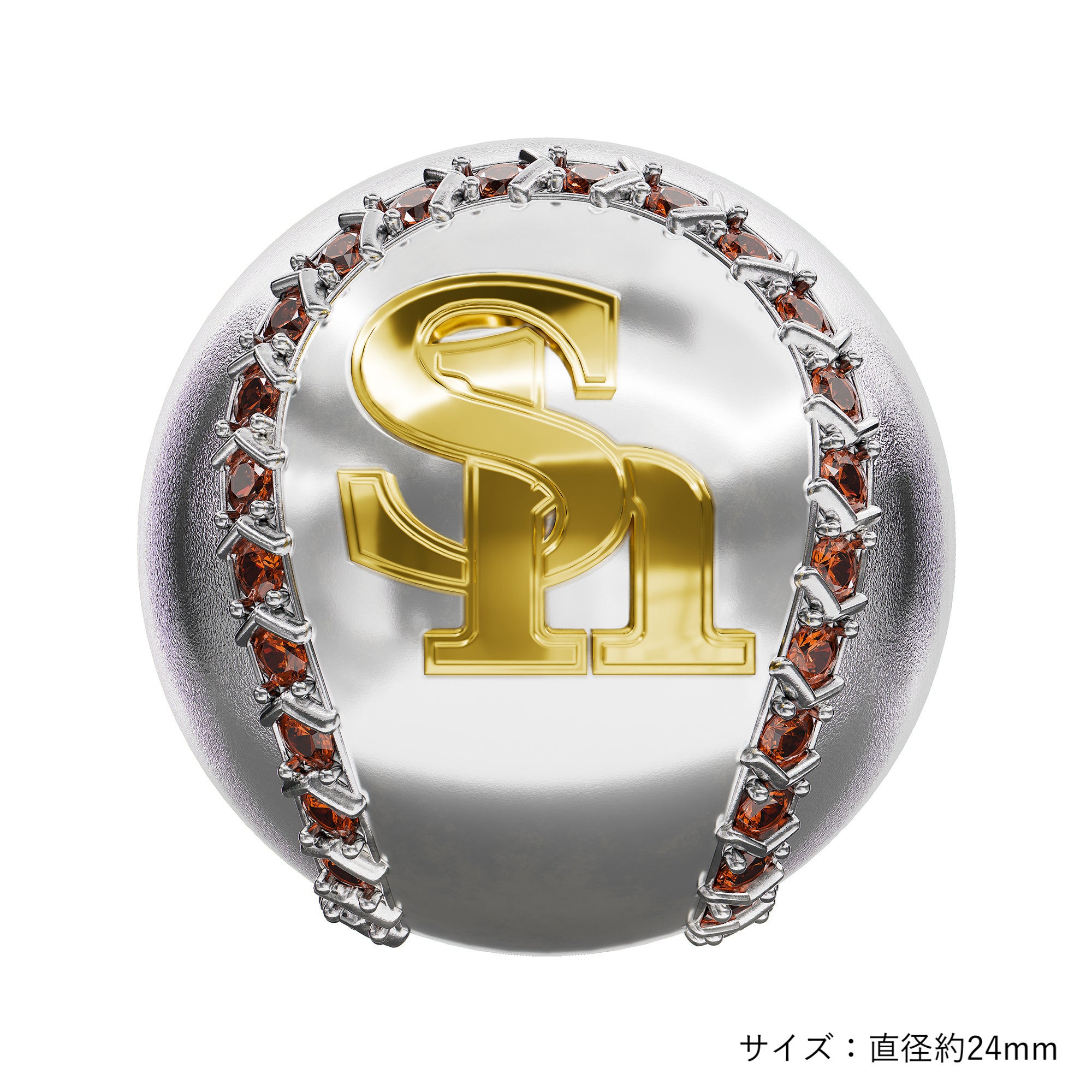 ボール本体にはシルバー(SILVER925)、チームロゴ部分にはK18イエローゴールドを使用。さらに、縫い目を表す部分に、日本一への情熱を象徴する、輝きが美しい赤系ガーネットを50石セッティングしました。