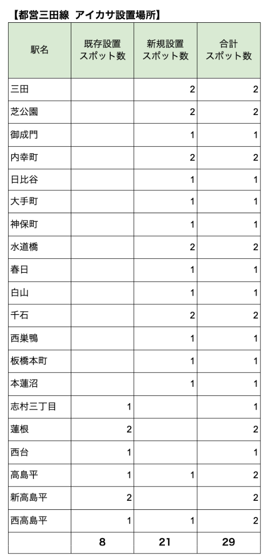 - 都営三田線:16駅(計21か所)