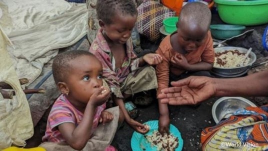 アフリカ中部のコンゴ民主共和国は、長年の政情不安と経済危機、自然災害が重なり、飢餓が深刻化しています。ホーテンスちゃん(2歳)は、住んでいた地域での激しい戦闘から逃れる中で、十分な食事がとれず衰弱し、歩くことができなくなりました。ワールド・ビジョ ンの支援による医療機関での治療と栄養改善の取り組みによって、3ヵ月後には友だちと遊べる ほどに回復しました。