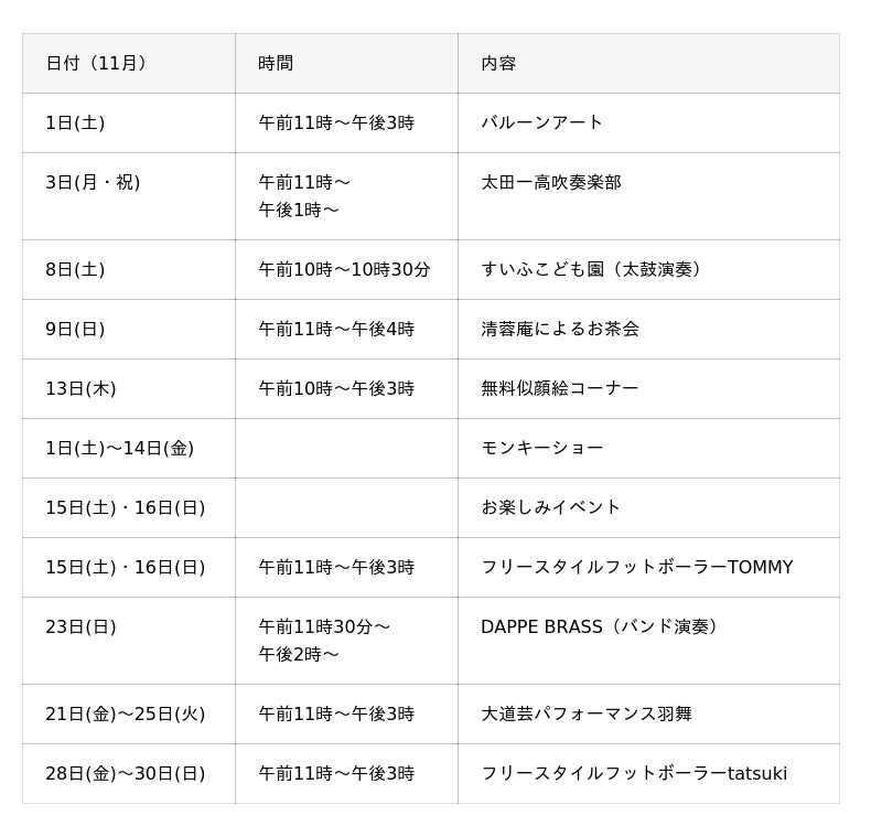 - 期間:11/1(土)~11/30(日)午前9時~午後4時