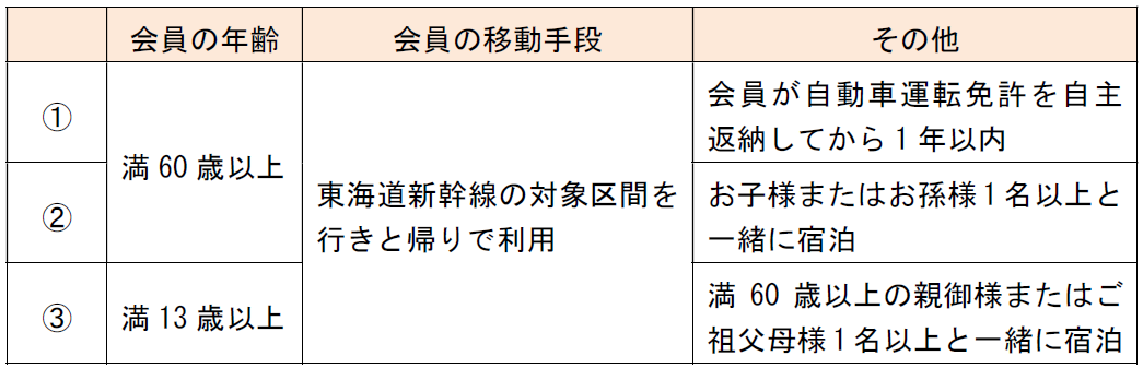 東海旅客鉄道株式会社、東急不動産ホールディングス株式会社、東急不動産株式会社、東急リゾーツ&ステイ株式会社は、東急ハーヴェストクラブ会員(以下、会員)が運転免許証の自主返納や二世帯での旅行等の条件を満たし、東海道新幹線で移動して宿泊する場合に特典を付与するキャンペーンを共同で実施します。