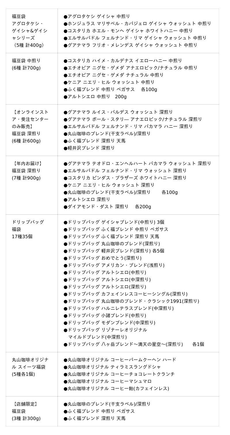 ※オンラインストア・受注センターで予約販売中の福袋は、丸山珈琲直営店舗ではご予約いただけません。