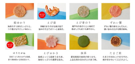「姫ゆかり」や「えび姿」をはじめ、ひとくちサイズの八種類の美味しさが1袋で楽しめる煎餅です。2002年の発売からおかげさまで24年目を迎え、累計販売数は3億袋を突破(※1)した、坂角総本舖の人気の定番商品のひとつです。
