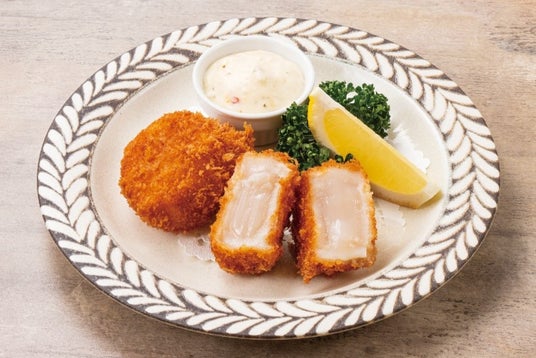 別海町ジャンボ帆立のレアカツ 880円別海町名物のジャンボ帆立を使用。お刺身で食べられる鮮度を活かしたレアカツに仕上げました。
