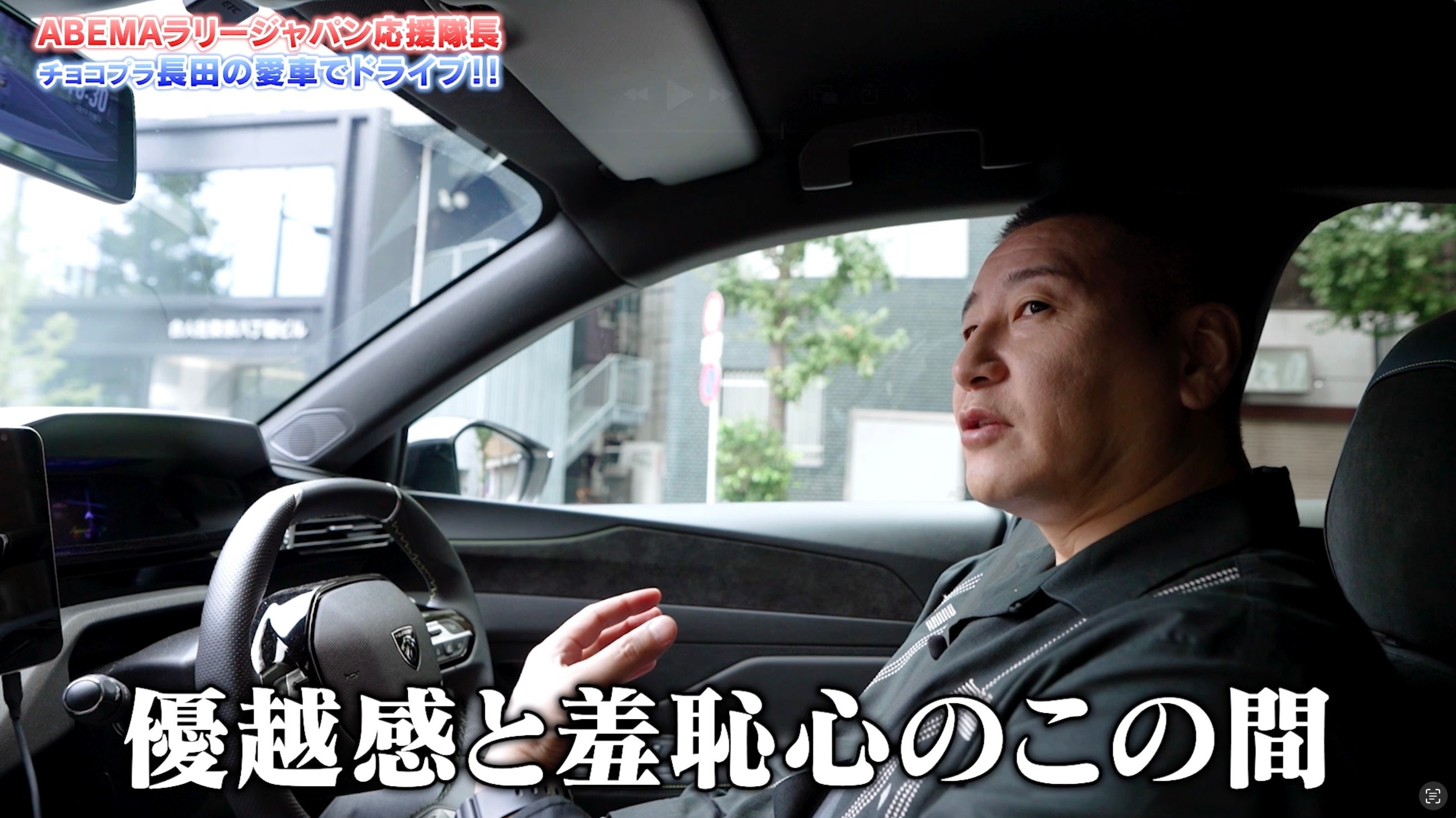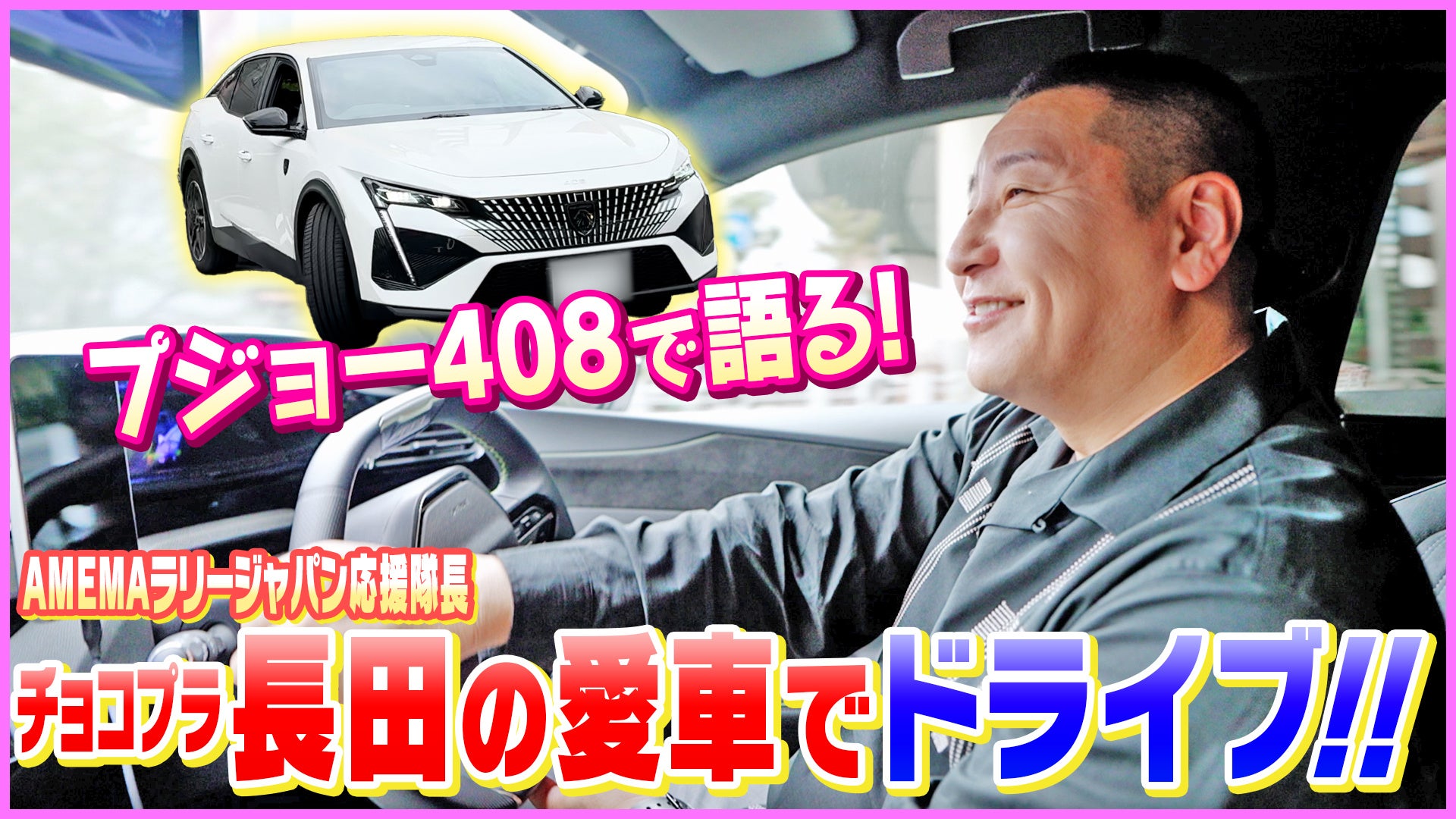 タイトル名:愛車のプジョー408でクルマ愛を語る!"ABEMAラリージャパン応援隊長"チョコレートプラネット 長田庄平さんの愛車でドライブ![ラリージャパン2025YouTube限定企画-第4弾-]