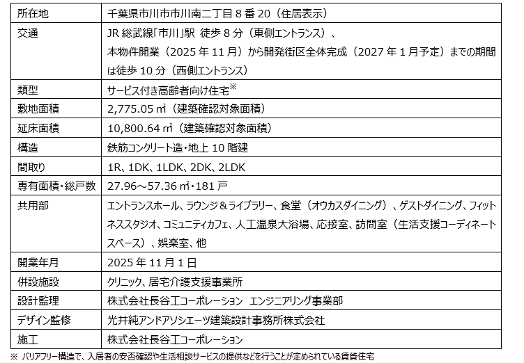 野村不動産株式会社(本社:東京都港区/代表取締役社長:松尾大作、以下「野村不動産」)および野村不動産ウェルネス株式会社(本社:東京都港区/代表取締役社長:笠原一俊、以下「野村不動産ウェルネス」)は、ご入居者およびご家族の皆様の健康寿命の延伸を支援することで、「世界一の人生づくり」を目指す健康増進型・賃貸シニアレジデンスのシリーズ「OUKAS(オウカス)、(以下オウカス)」の第7弾として、延床面積1万平方メートル 超、千葉県内のオウカスで最大規模となる「オウカス リーフシティ市川」(全181 戸)が2025年11月1日に開業することをお知らせいたします。