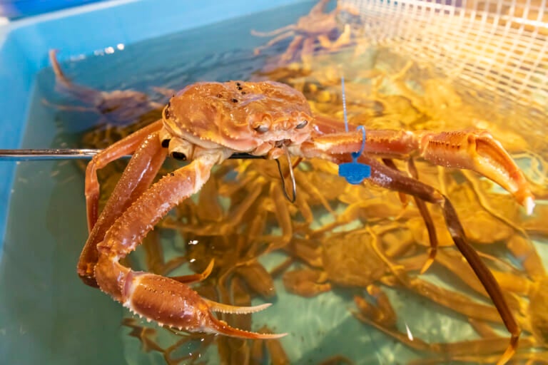 丹後半島・間人港で水揚げされる「間人ガニ」は、漁期が短く水揚げ量も少ないことから“幻のカニ”と呼ばれ、最上級のブランドガニとして知られています。