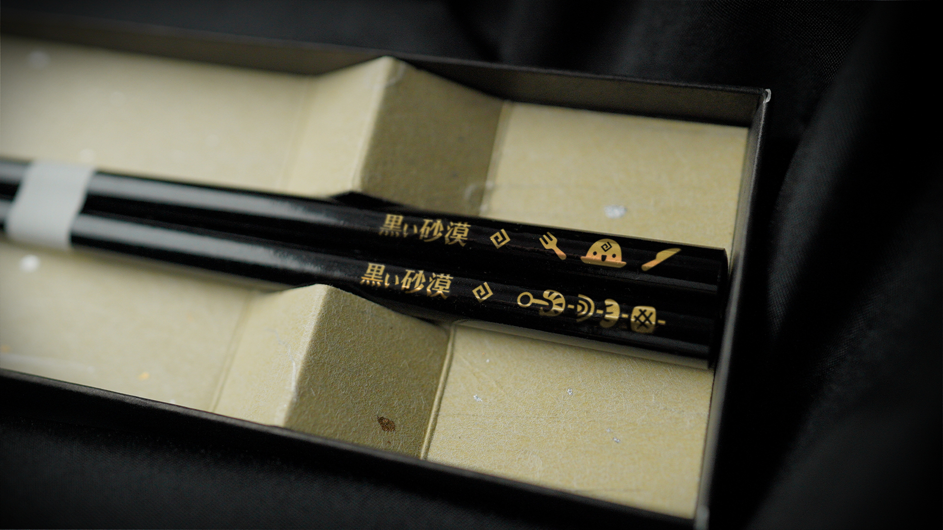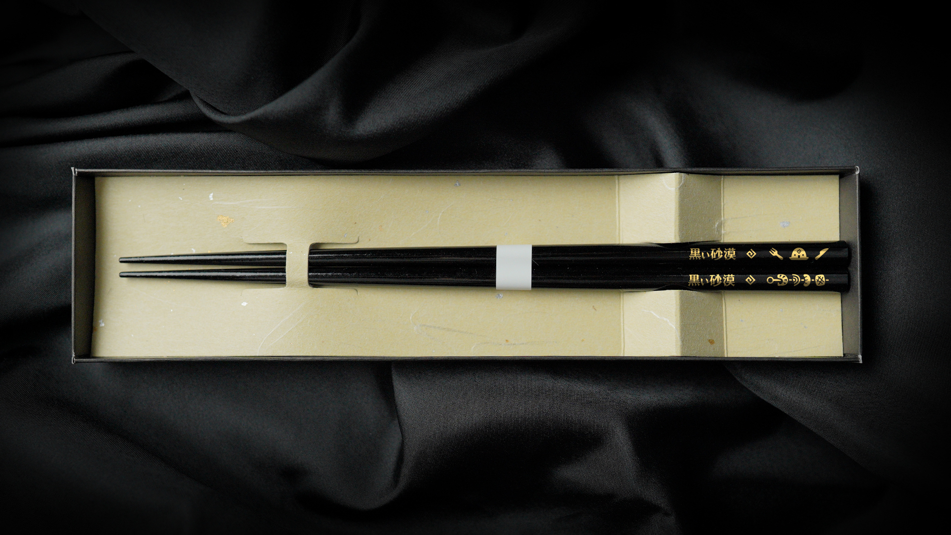 『黒い砂漠BBQ2025』限定のオリジナル箸は、本イベントのためだけに制作された特別なノベルティです。持ち手部分には可愛らしい「闇の精霊」がデザインされ、黒い砂漠の世界観をさりげなく感じられます。イベント当日は実際にBBQでご使用いただけるほか、記念品としてお持ち帰りも可能です。