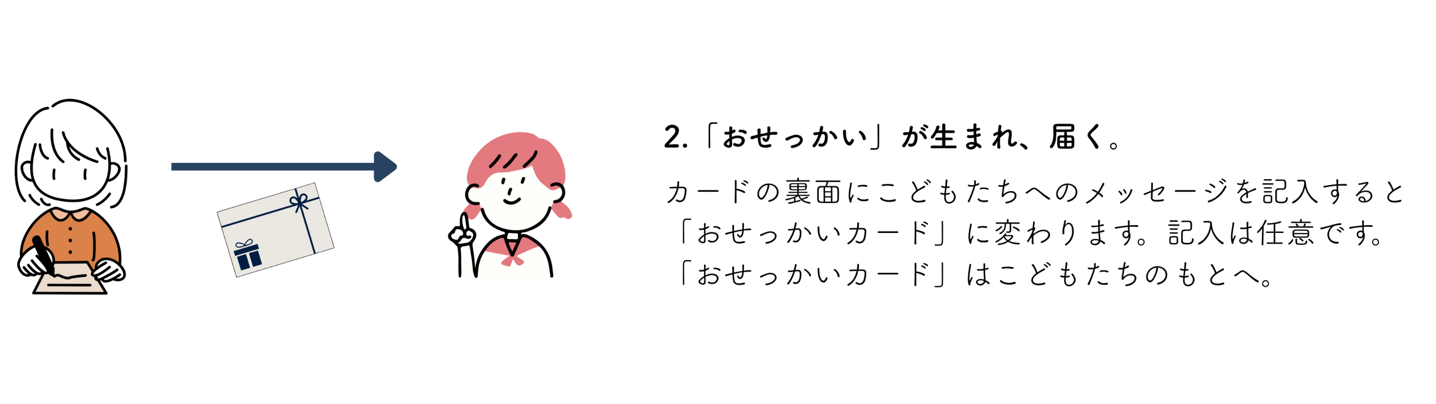 メッセージを書いた瞬間、それは“おせっかいカード”に変わり、こどもたちのもとへ届きます。