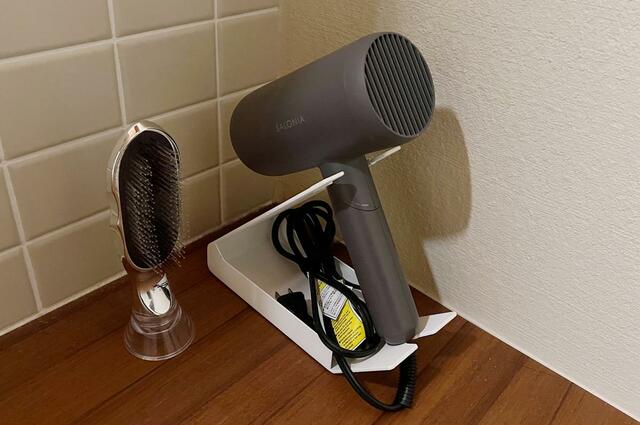 公式サイトの写真で使用しているPanasonicのナノケアと比べると、わが家のドライヤーは持ち手が長くジャストフィットではなかったものの、使用する上ではまったく問題なし。