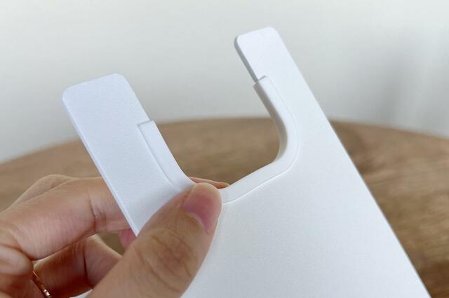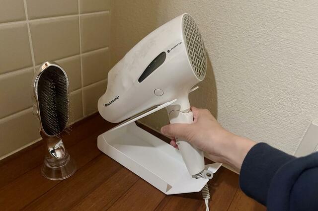 ちなみに、ドライヤーを上下2カ所のスタンドへ押し込められると正しく収納できているとのこと。
