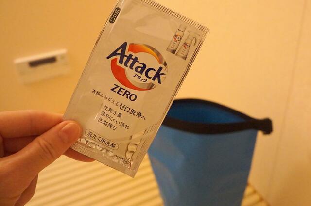 水着を入れたら、持参した旅行用液体洗剤を投入。