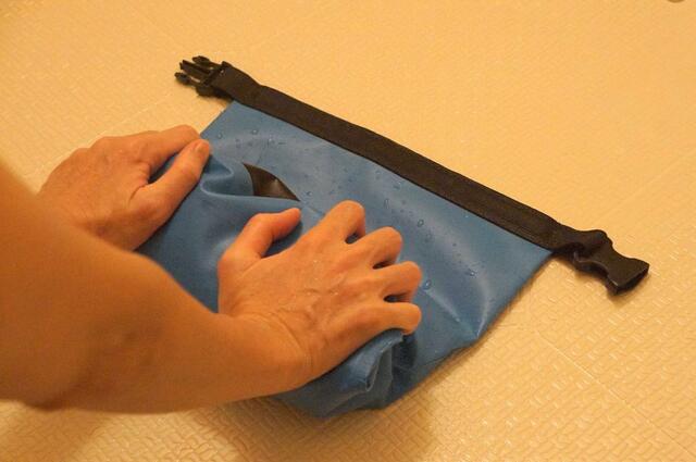 口を3回折り込んで、バックルを留めたらセット完了です。