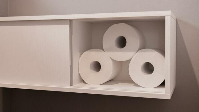今回は、トイレットペーパーやお掃除アイテムが見える位置に置かれていたトイレに収納を増やすことにしました。