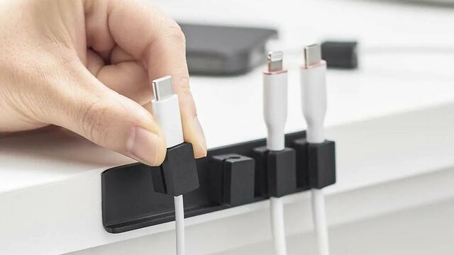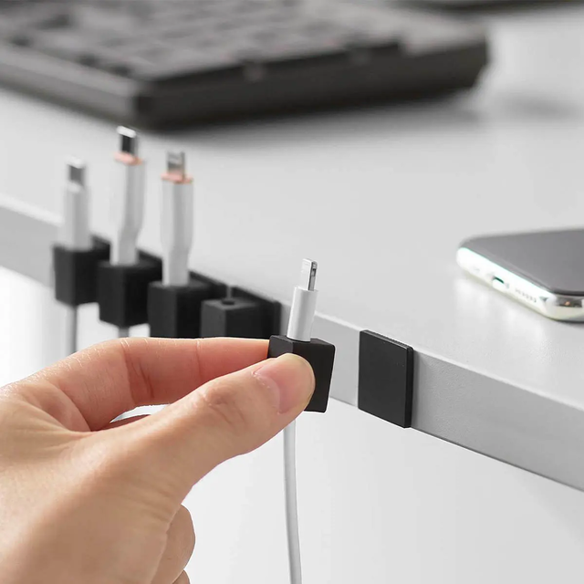 マグネット内蔵のホルダーにケーブルを通し、ベースにペタッとしてケーブルを整理できるのです。