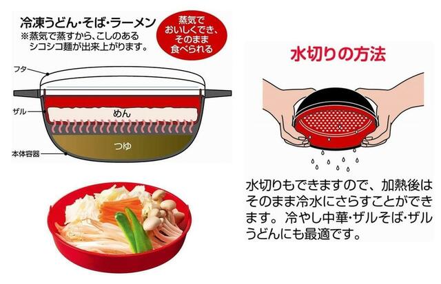 ラーメンだけではなく、そば・うどん・焼きそばを電子レンジで調理できるので、麺好きにはたまりません。