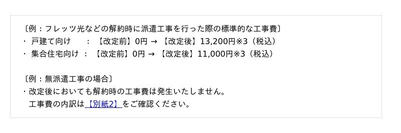 2. フレッツ光などの解約時に派遣工事を行った際の撤去工事費の新設