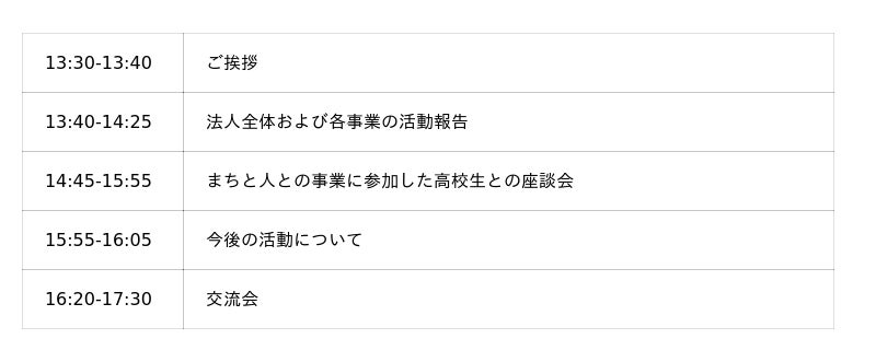 日頃からまちと人との活動を応援してくださる寄付者・支援者・連携企業のみなさま、当財団の活動やインターン・ボランティアに興味のある学生・社会人の方、そのほか、石巻地域のまちづくり、教育、若者支援に関心のある方など、あらゆる方々のご参加をお待ちしております。