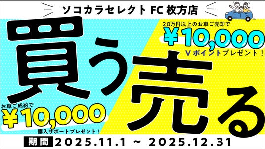 ソコカラセレクト岸和田に引き続き、ソコカラセレクトFC枚方店でもお得な各種キャンペーンを実施いたします!