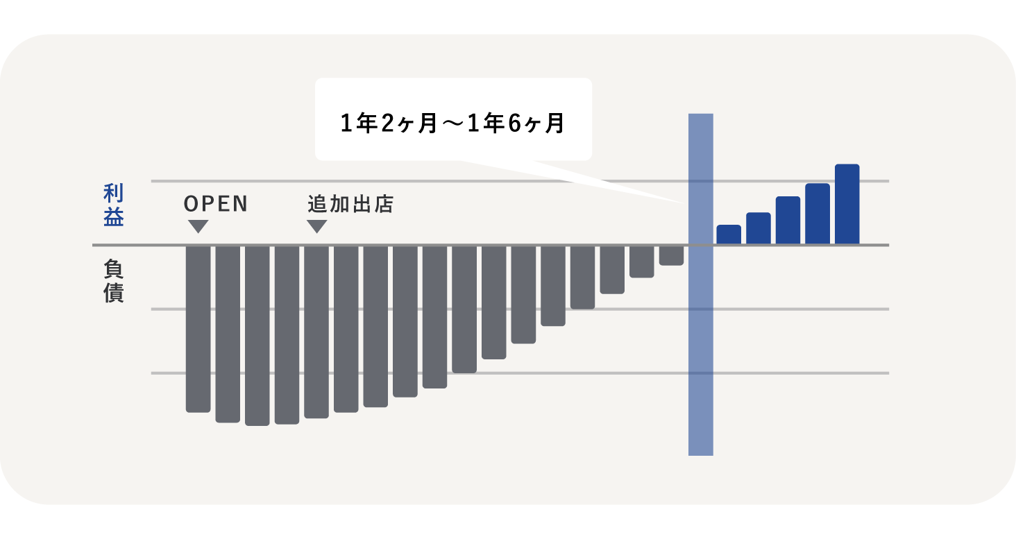 また、オープンから5ヶ月後には追加出店が可能となるため、投資回収期間に関するシミュレーションもご紹介いたします。