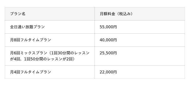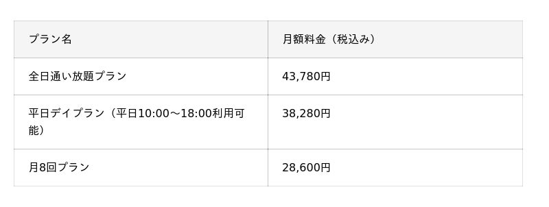 <ウエイトトレーニング×マシンピラティス 料金プラン>