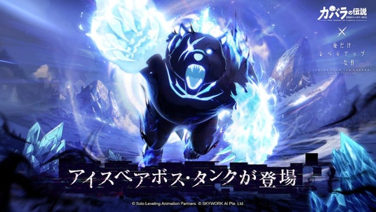 コラボ限定ペットアイスベアボス・タンクが登場!もとはダンジョンのアイスベアの首領。水篠旬に倒された後、その影として召喚され、「タンク」と名付けられた。