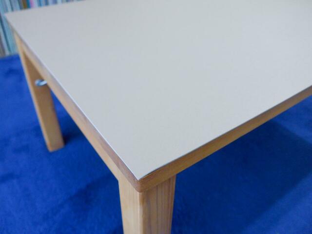 これだけでテーブルの印象が変わりました。淡いグレーの面を使うと、空間全体が落ち着いた雰囲気に。