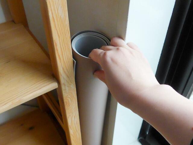 ときどき木目が恋しくなるので、そういうときはくるくる巻いて棚の隙間に収納。