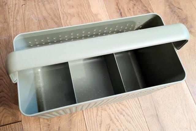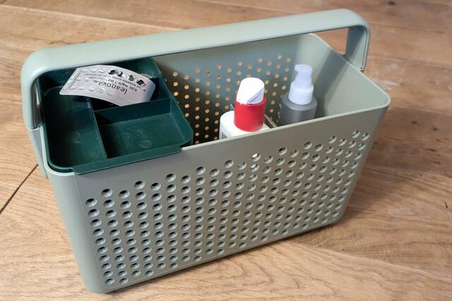 カパッとはめる式の仕分けトレーもあるので、小物をかごの中でなくしてがさごそ漁る必要もありません。