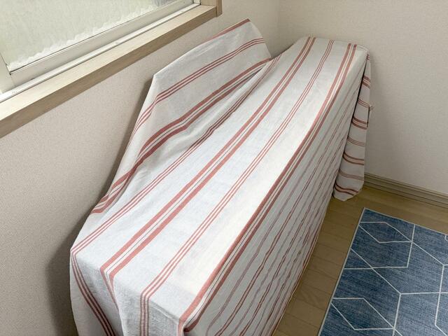 残念ながら蓋はないので、ホコリがたまらないように自分で用意した布カバーをかけています。