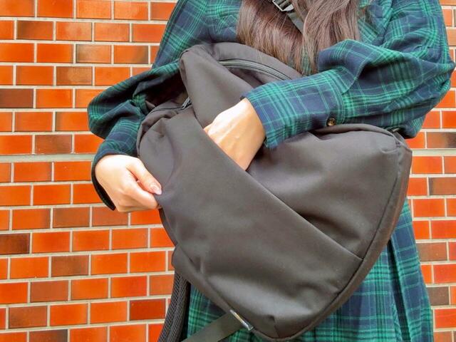 丸みを帯びたフォルムのリュックなので、フェミニンなアイテムにも合わせやすい点も◎。すっきりとしたシルエットで、さまざまなシーンにマッチします。