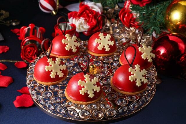 クリスマスオーナメントに見立てたチョコレートムースの中から、木苺のジャムの爽やかな酸味を感じる一品。