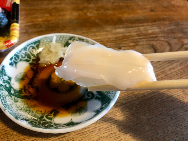 まぐろの切り身ほど濃厚な味わいはないものの、癖がなく程よい甘みと旨味を味わえます。うんうん。脂が乗ったサーモンの次に食べるのにちょうど良い一品ですね。
