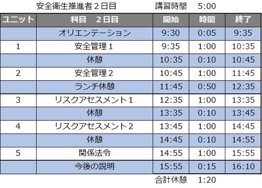 ■開催日程 (安全衛生推進者の御受講の方は1日目と2日目両方をご予約下さい。)