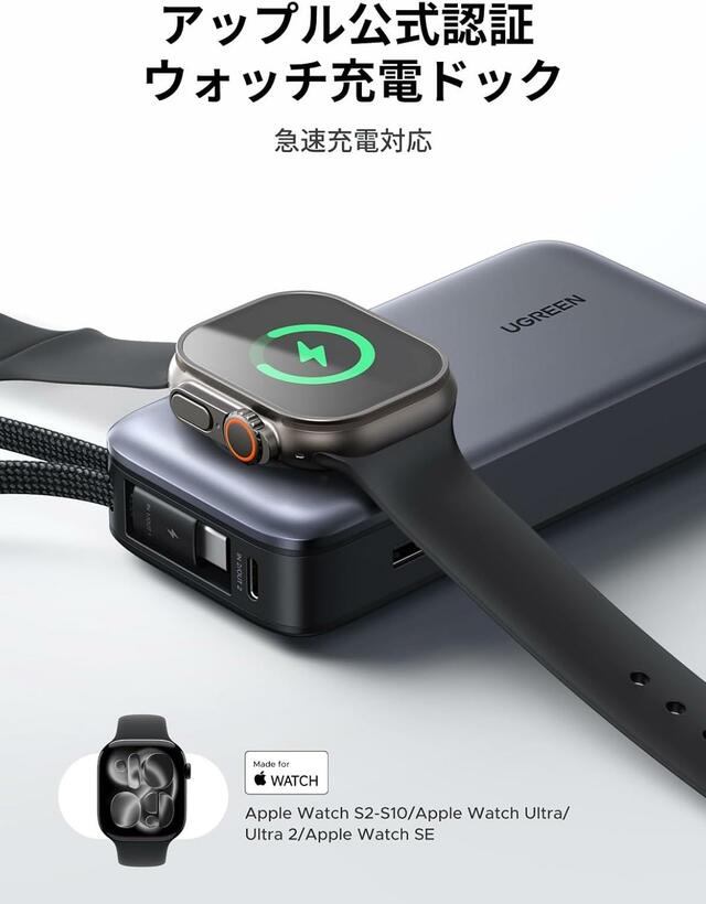 10月9日には「For Apple Watch モバイルバッテリー(10000mAh・PD30W・手持ちコード)」が登場しました。
