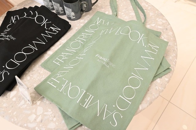 リニューアルオープンを記念して、店舗限定のトートバッグが登場。青山店と新宿サザンテラス店でデザインが異なり、それぞれのリニューアルにふさわしい特別なメッセージがあしらわれています。