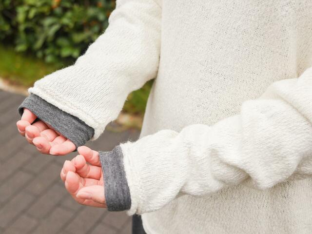 それにニット1枚だと肌寒く感じるけれど、これを着ていると手首や首元まで包んでくれるからとても気持ちいい〜。