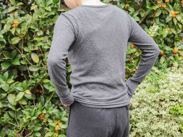 インナーとしても着られるややタイトなつくりだからこそ、この素材に包まれていると安心感がありそう……!